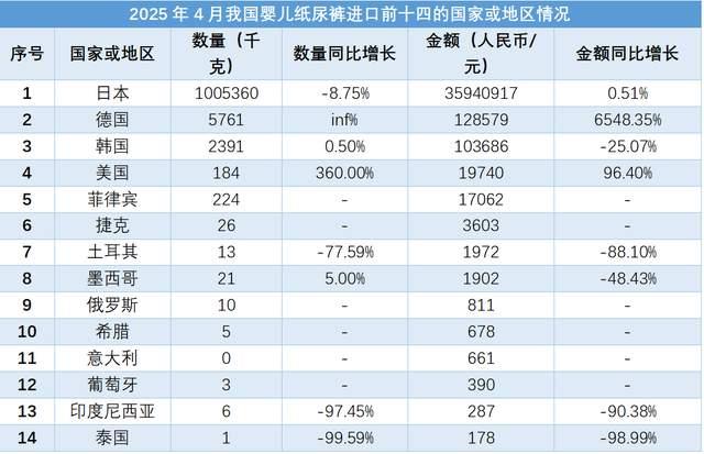 2025年4月我國嬰兒紙尿褲進出口數據報告