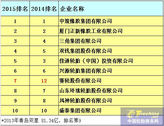 中策橡膠排行第一,盛泰集團(tuán)排行第十,而賽輪股份第一次進(jìn)入前十;雙星淡出。