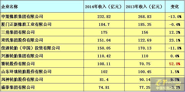 中國輪胎企業(yè)風(fēng)起云涌,花開花落隨著2014年雖然已經(jīng)落下帷幕,我們回頭看看中國輪胎企業(yè)的脊梁們過往的一年中收入幾何,數(shù)字是指運(yùn)營收入并不是利潤。